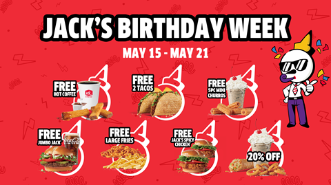 During Jack’s birthday week, new and existing Jack Pack® members will have access to exclusive daily offers deals on fan-favorite items ranging from breakfast foods to desserts and everything in between: