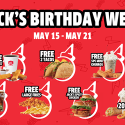 Saturday May 20 – BOGO Jack’s Spicy Chicken Sandwich - share with your friend or eat both yourself. It’s birthday week, Jack doesn’t judge.