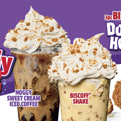 takes our signature vanilla shake and blends in smooth eggnog flavors with a sprinkle of buttery Biscoff