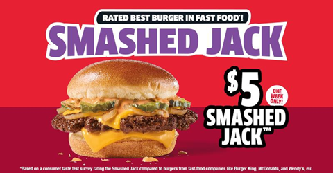 - 9/12 – 9/18: $5 Smashed Jack available in-store and on the Jack App