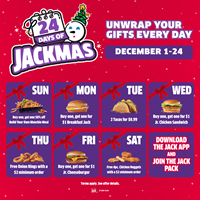 From December 1 through December 24, Jack Pack® members can unwrap a new deal every single day through the Jack app!